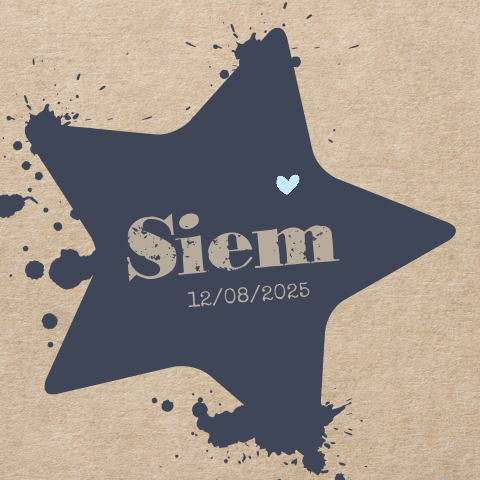 Stoere Geboortekaart Jongen Met Verf Ster Op Bruin Karton